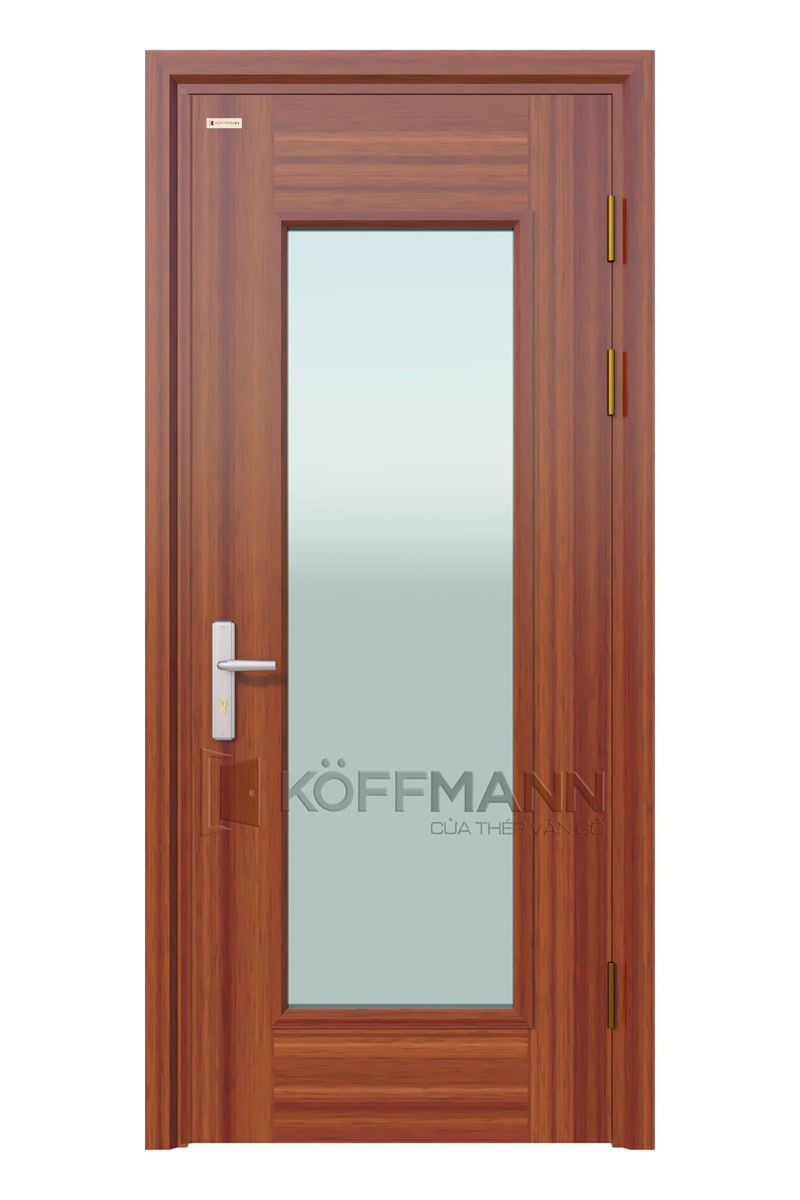 - Mẫu cửa thép vân gỗ cánh đơn KG-1.K được chúng tôi thiết kế với kích thước nhỏ gọn, kết hợp cùng kính giúp người bên trong dễ dàng quan sát. Chúng thường được sử dụng cho cửa đi, cửa thông phòng, cửa phòng khách, cửa phòng ngủ…